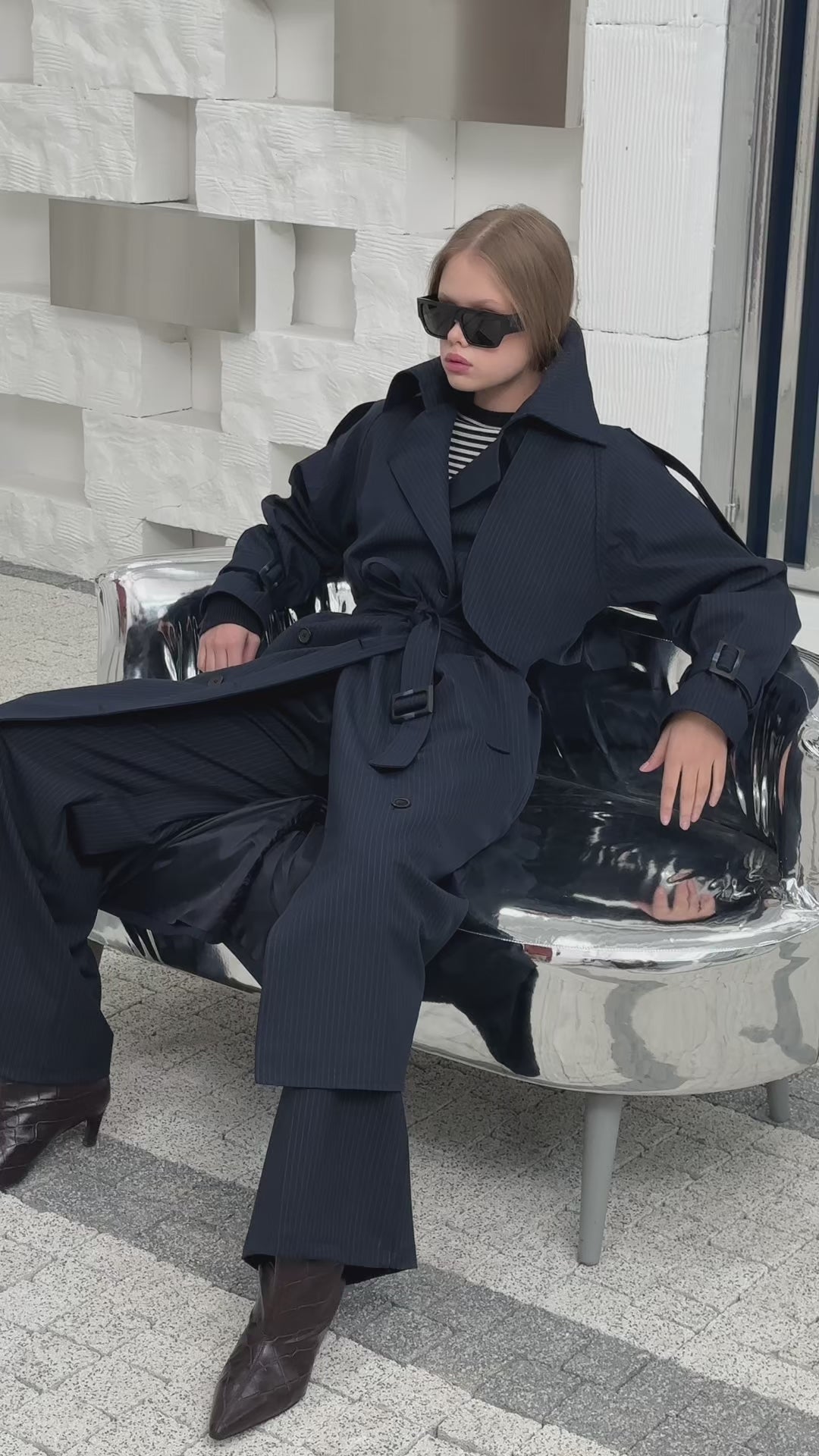 Premium Oversize Astarlı Uzun Lacivert Trençkot