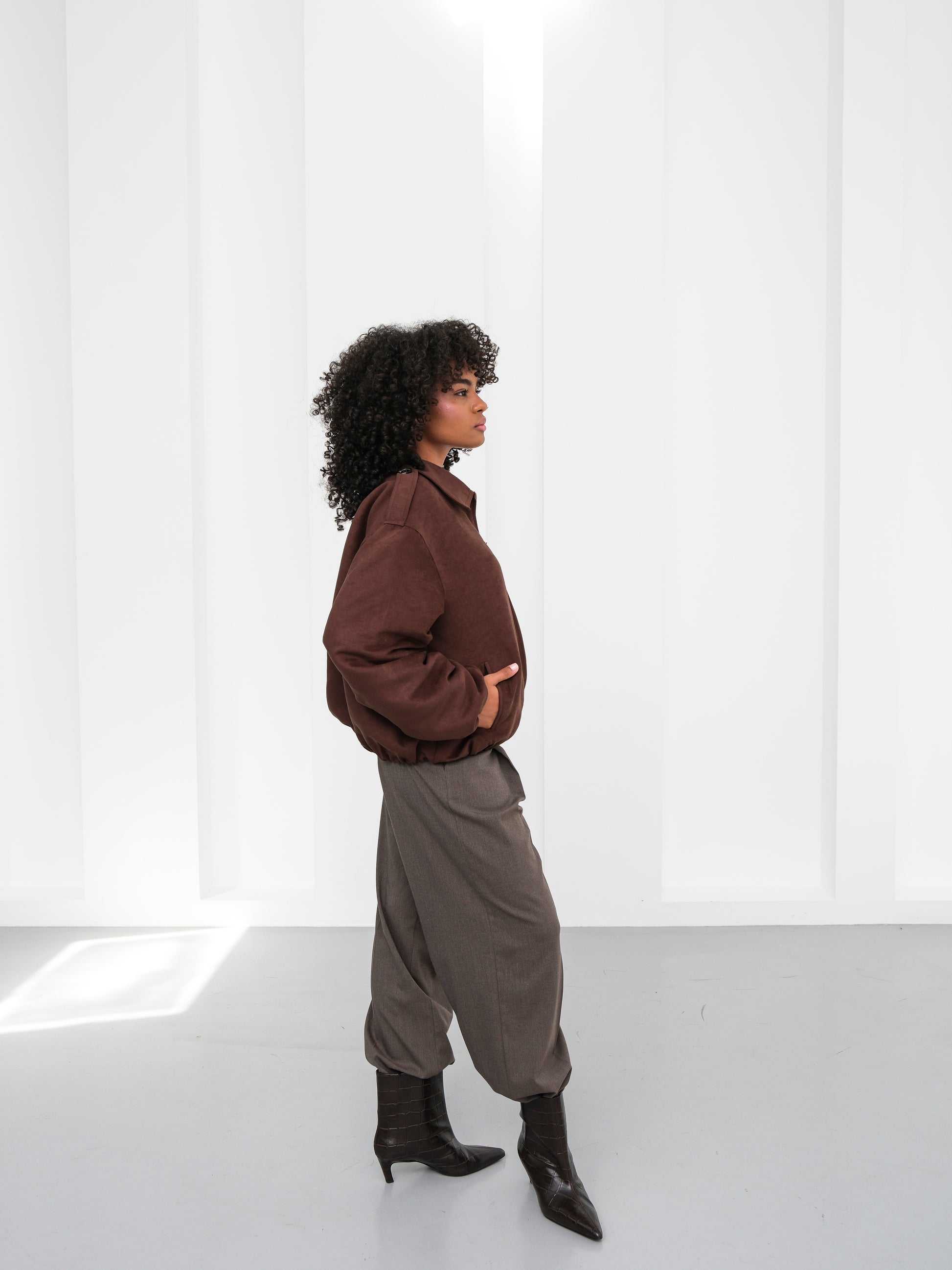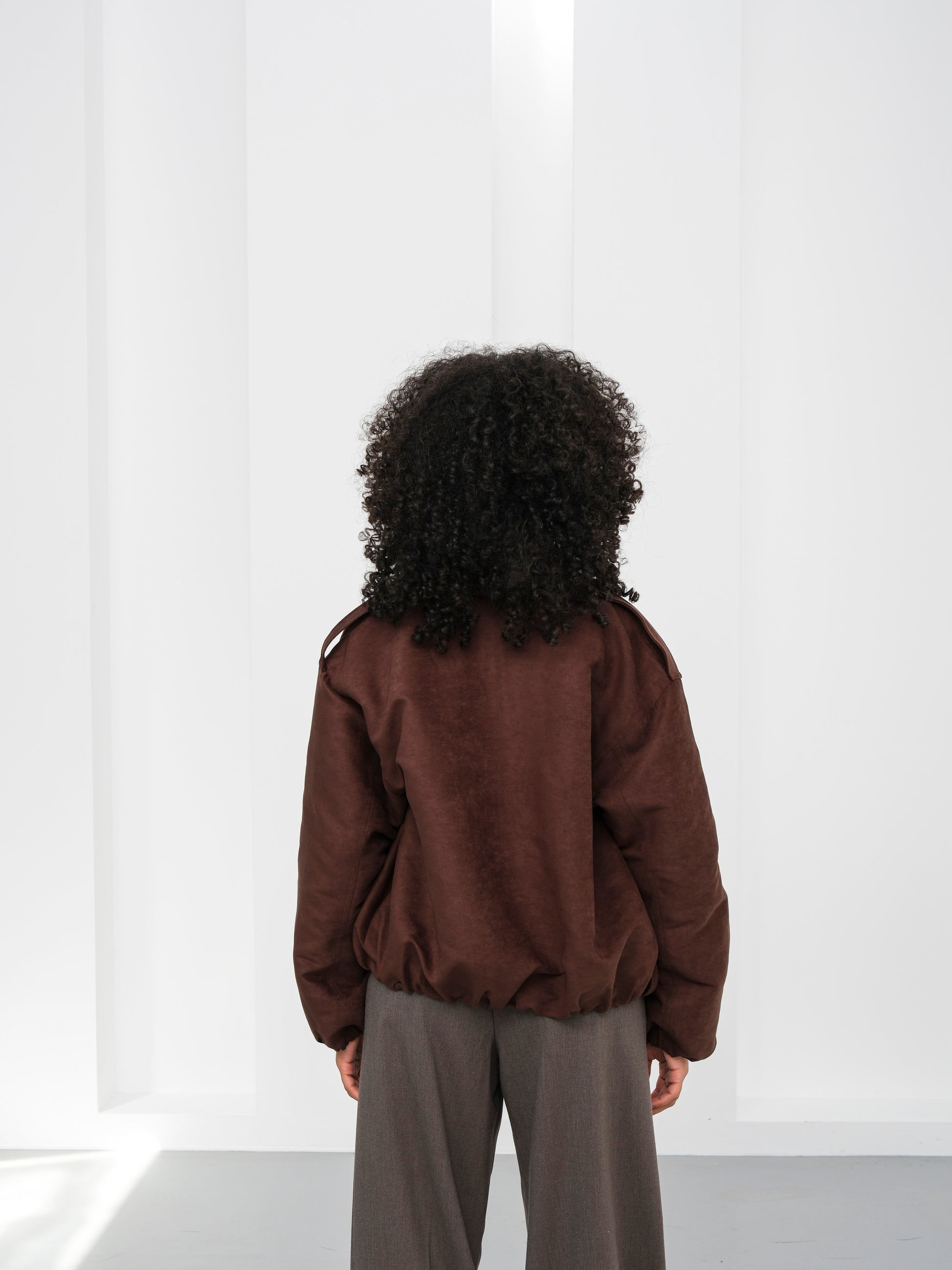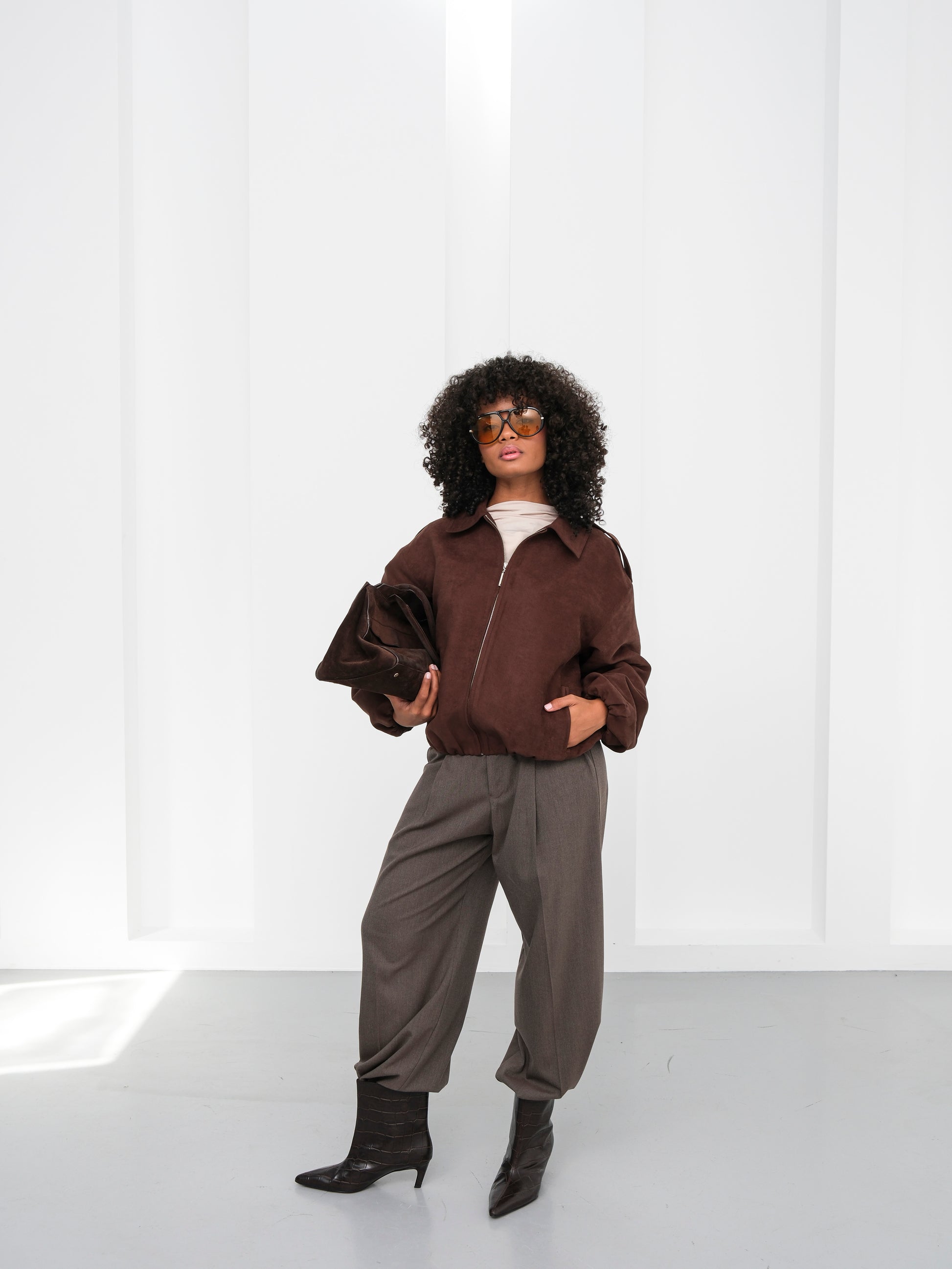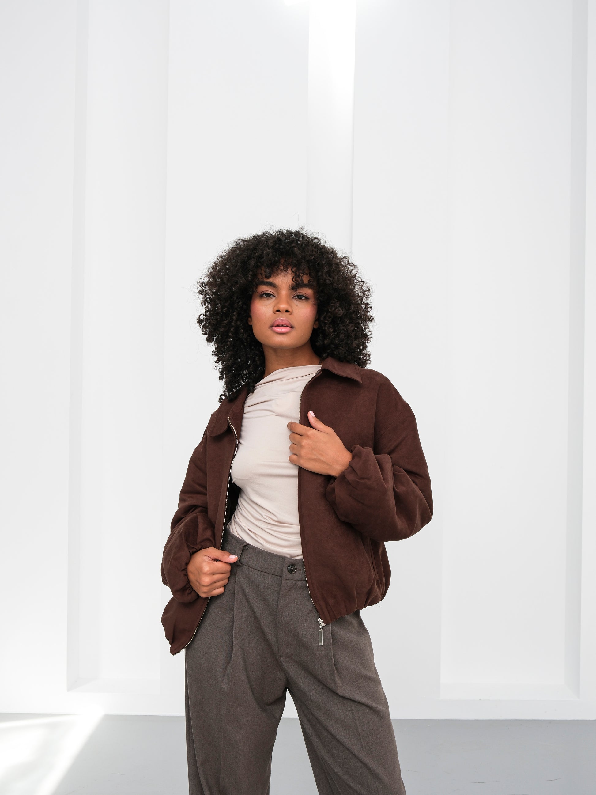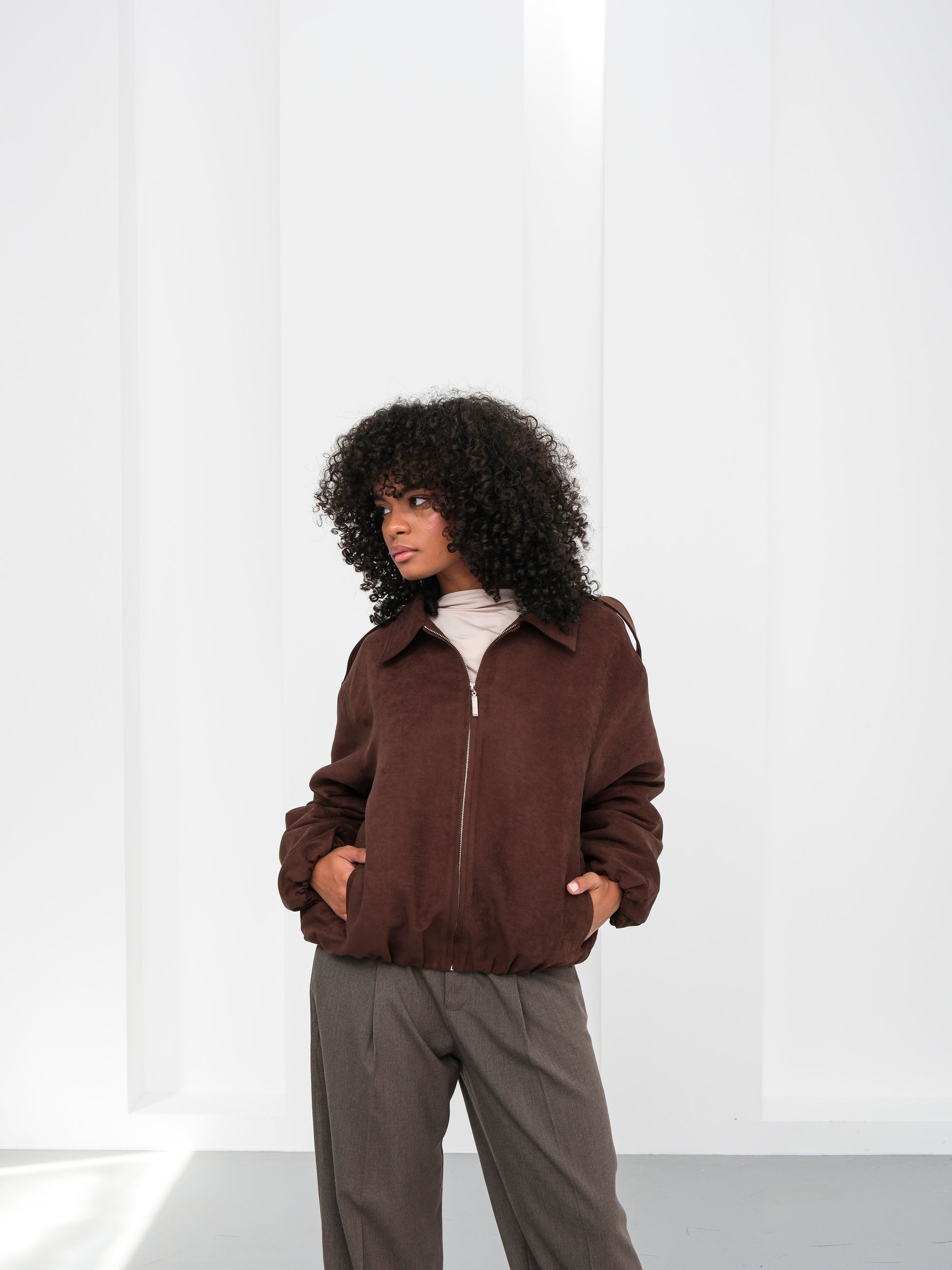 Kahverengi Bomber Fermuarlı Süet Ceket