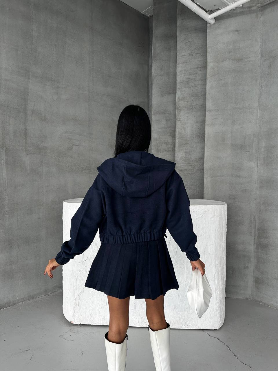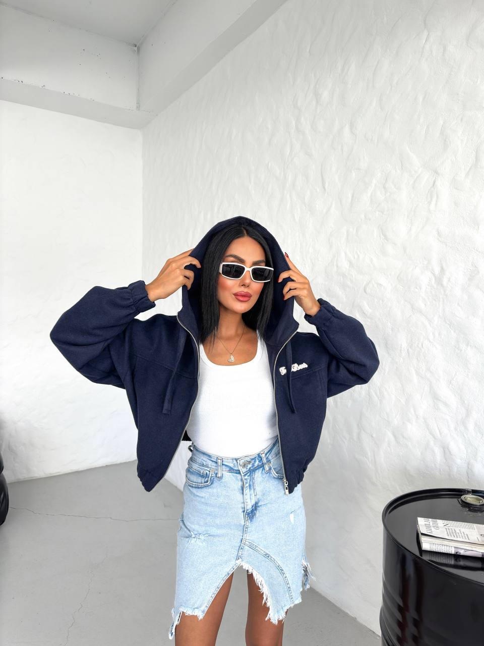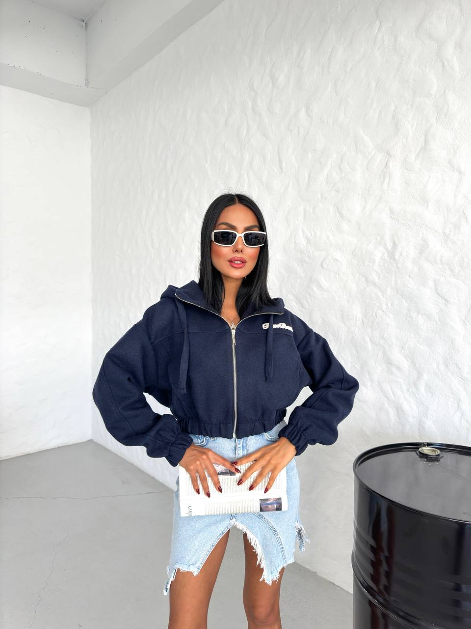 Lacivert Kaşe Kapüşonlu Bomber Ceket