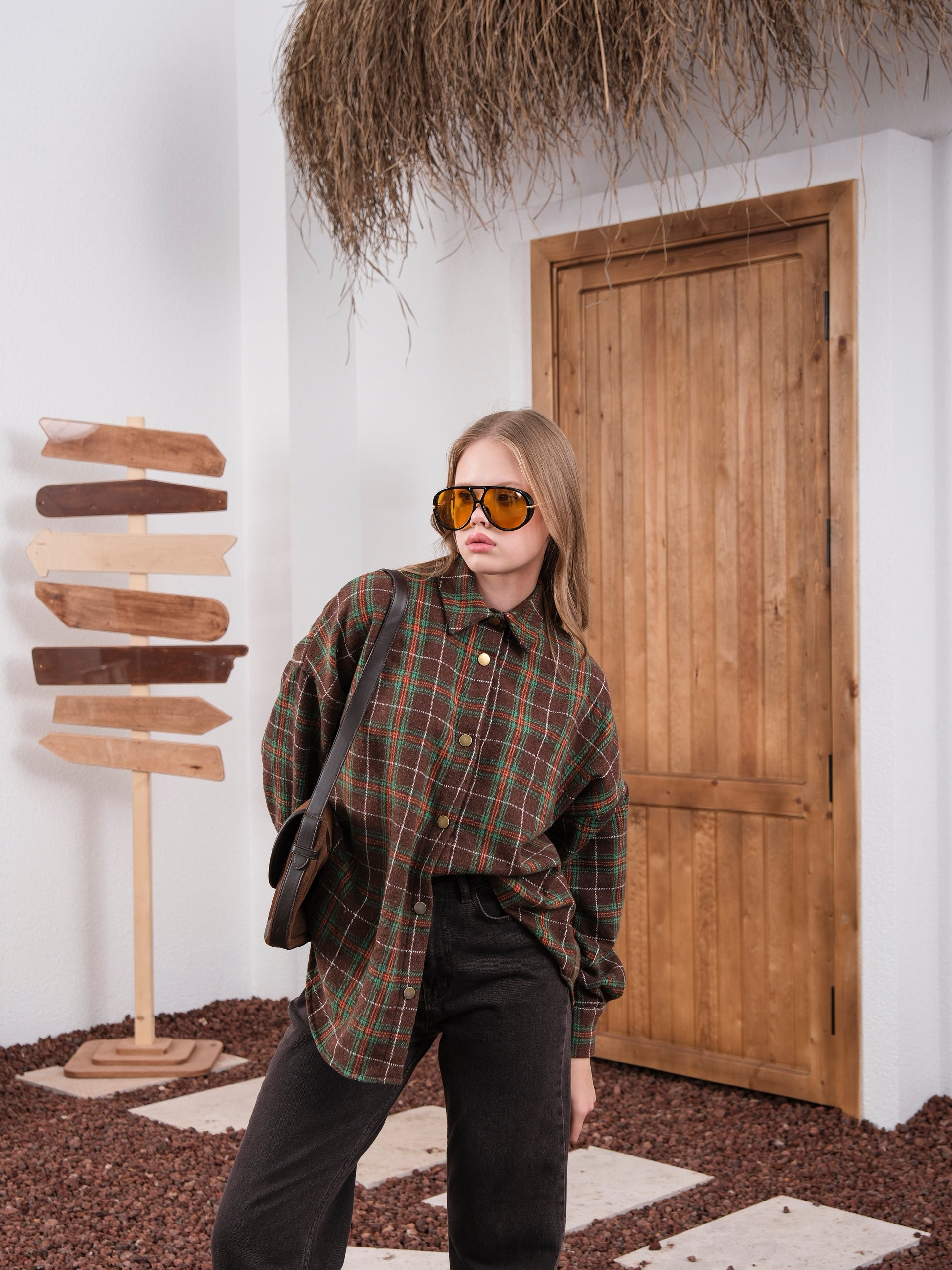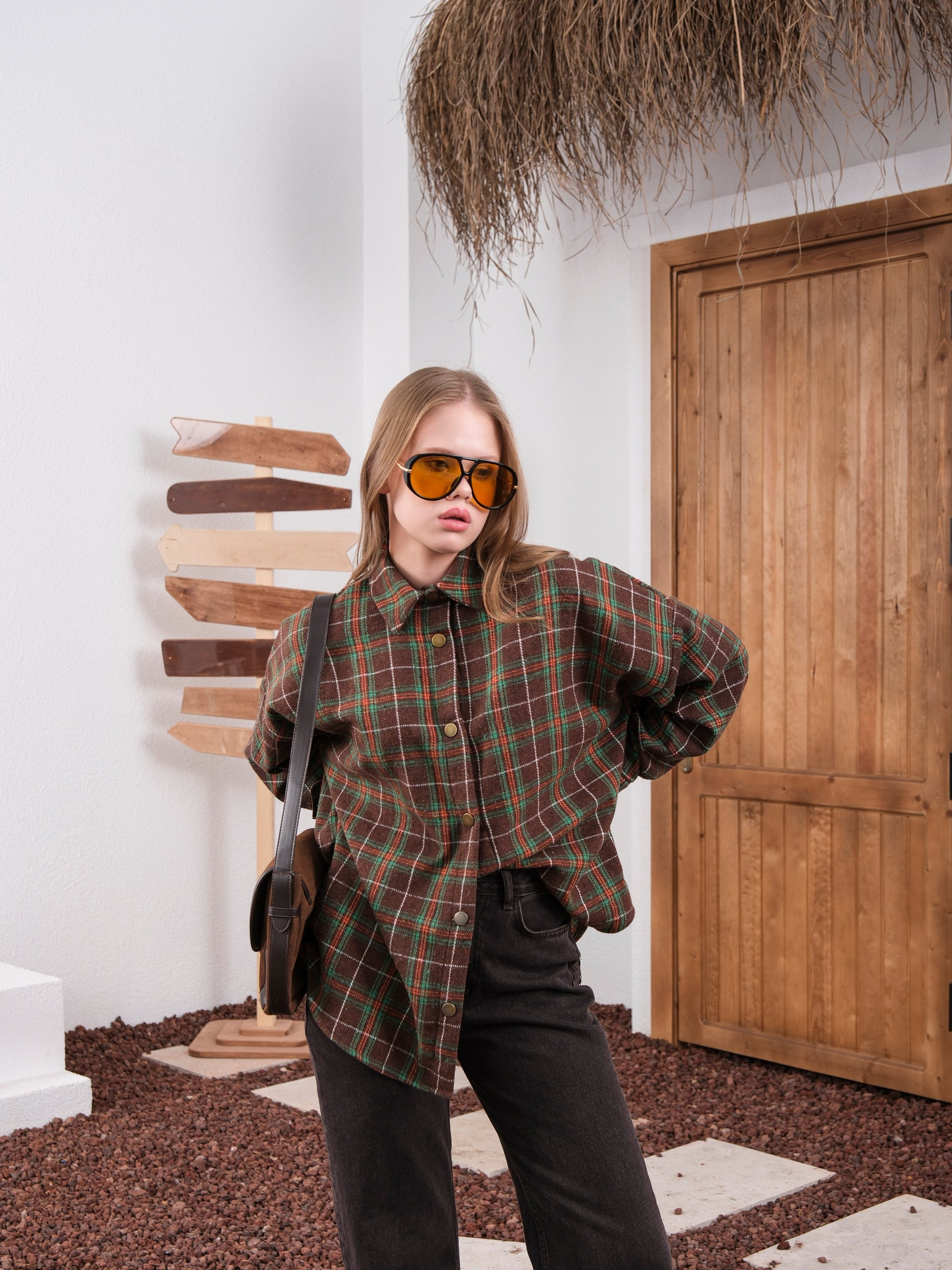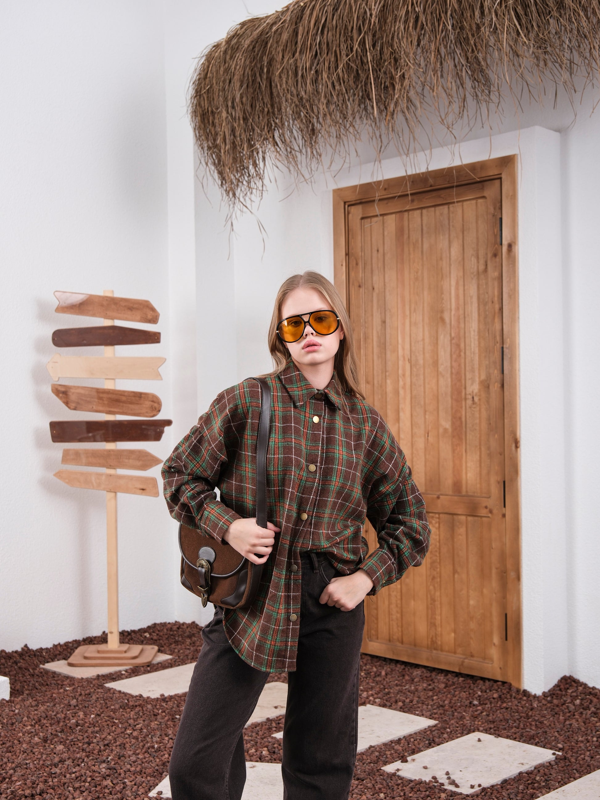 Kahverengi Ekose Desenli Oduncu Gömlek
