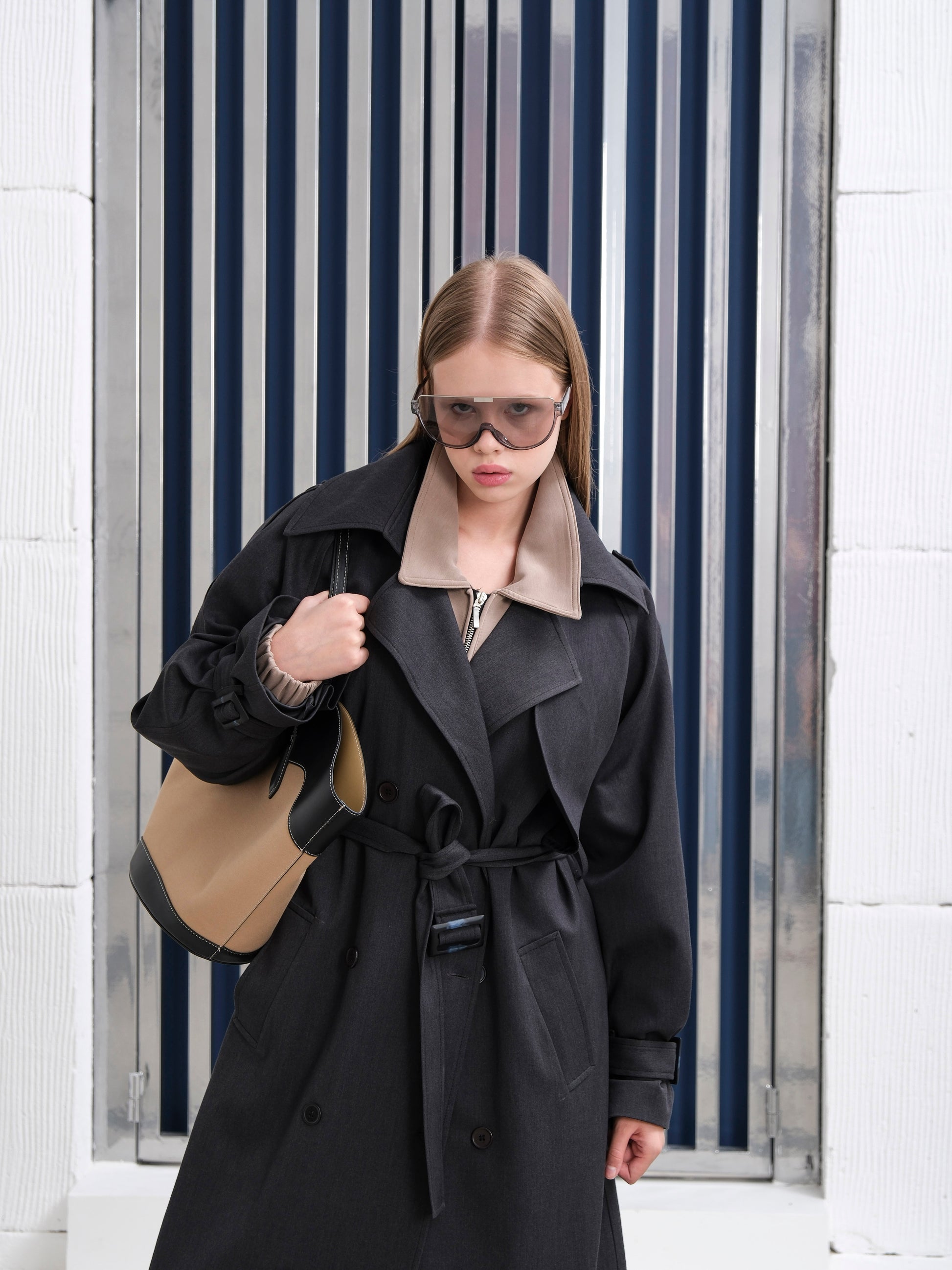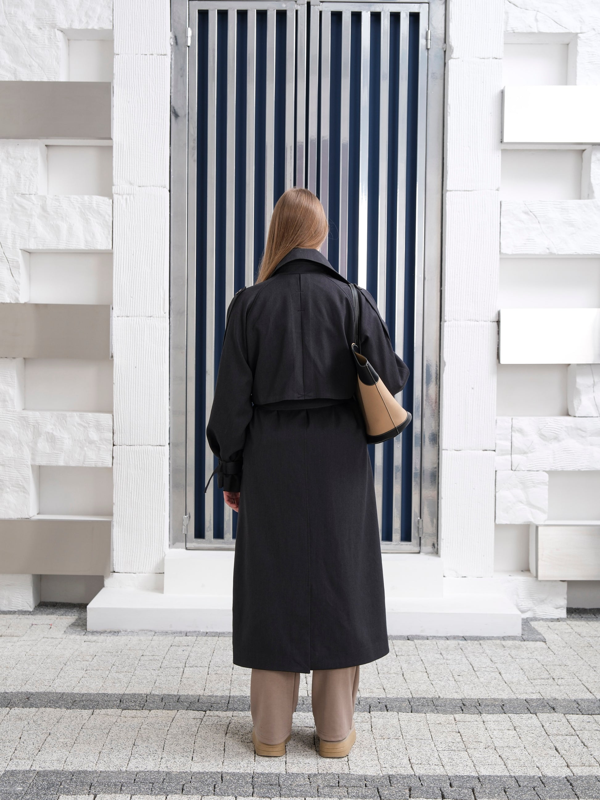 Premium Oversize Astarlı Uzun Antrasit Trençkot
